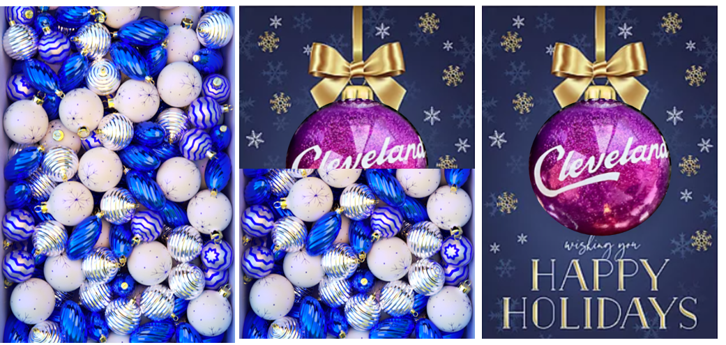 For this project, I was tasked with creating a series of Christmas-themed videos to be played on loop inside a Proto hologram box for the Convention Center of Cleveland. The videos needed to be carefully designed in a way that gave off the illusion that they were taking place inside the box structure. I formed the snow globe by texturing a 3D modeled asset of the Cleveland City skyline and combining it with the base of the snow globe. The snowflakes inside the globe were made using a cloner in Cinema 4D, while the snowflakes outside were added in After Effects. The ornament video included a combination of small and large retextured ornament assets, utilizing Cinema 4D’s simulation features to create realistic dropping, piling and falling movements of the ornaments. In addition to the Christmas videos, I also created a rotating cube video promoting the advertisement space available for the Proto hologram box.